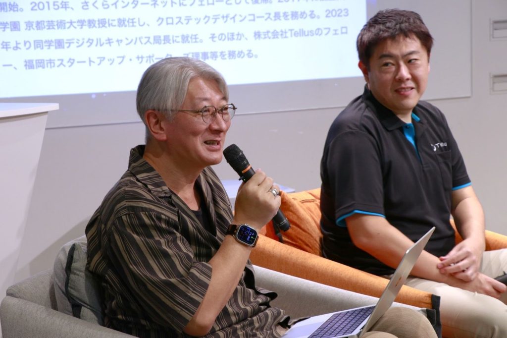 登壇したのは、京都芸術大学 クロステックデザイン 教授の小笠原氏、Tellus株式会社 代表取締役の山﨑氏、株式会社アークエッジ・スペース 代表取締役の福代氏、株式会社リリー代表取締役CEOの野崎氏。