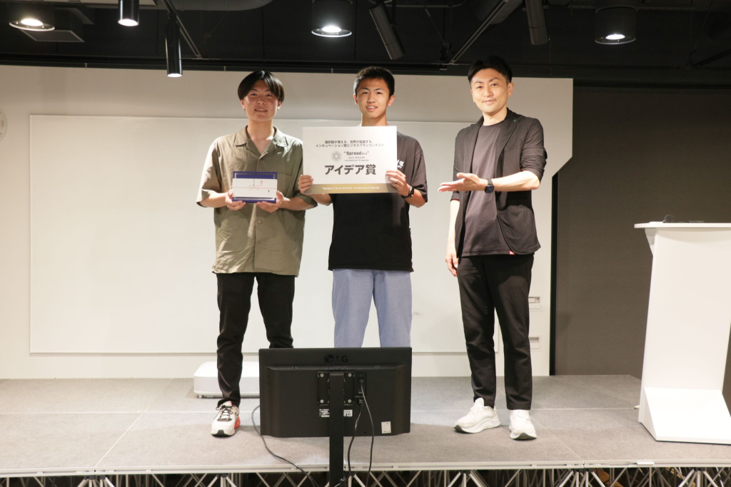 このたびアイデア賞という素晴らしい栄誉をいただき、心から感謝しています。僕たちの想いが審査員の皆さまに届いたことは、大きな励みとなり、これからの挑戦に向けて大きな自信を与えてくれました。この喜びを胸に、アイデアを実現し、多くの人の心に響く形にできるよう、これからも全力で取り組んでまいります!(中岡氏)