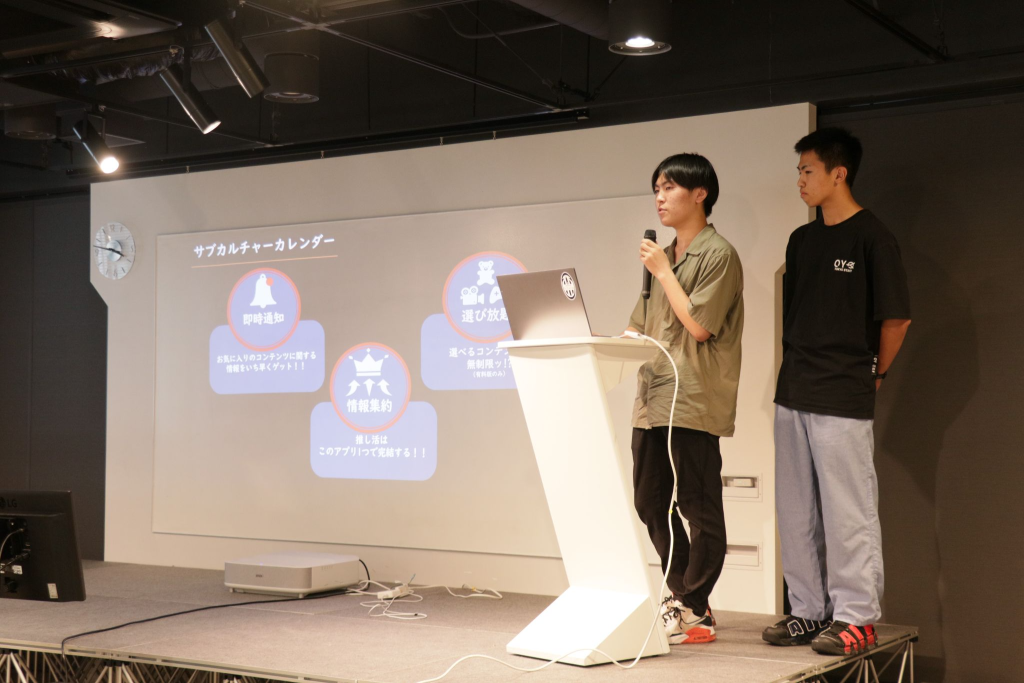 世の中を変革できるようなアイデアを表彰するアイデア賞に選ばれたのは、アニメや漫画などの情報が自動で集約され、推し活の手助けをしてくれるカレンダーアプリ「サブカルカレンダー」。好きなアニメや漫画に関する情報を集めようとしても、フェイクや偽通販が多い、作品数が多く情報が分散している、といった実体験での困りごとから生まれたアイデアです。