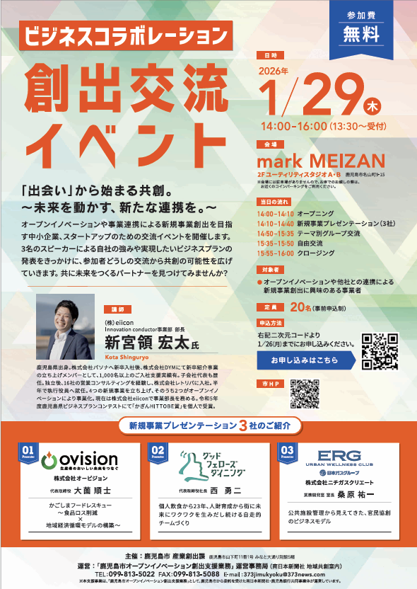 【鹿児島市より】~「出会い」から始まる共創。未来を動かす、新たな連携を。~ビジネスコラボレーション創出交流イベント 参加者募集中